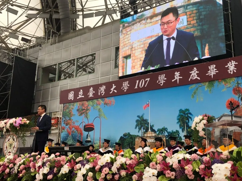 (圖為連加恩博士在108年6月應台灣大學邀請,在畢業典禮發表演講,分享個人學習經歷。照片提供:連加恩)